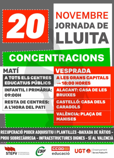 UGT, STEPV, CSI i CCOO convoquem les accions següents, en el marc de les mobilitzacions per millorar els salaris i les condicions laborals: