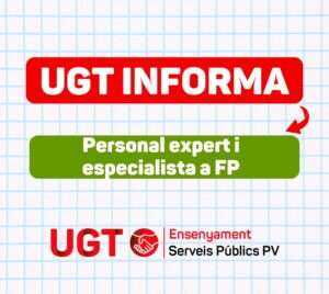 UGT denuncia el retard en la incorporació del personal expert i especialista a FP