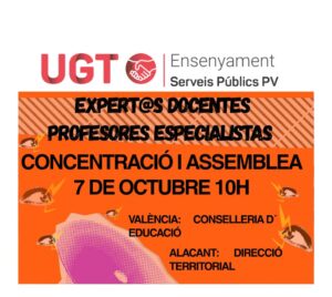 S’han convocat concentracions a Alacant, València i Castelló el 7 d’octubre per a protestar contra la retallada de condicions laborals. DIJOUS 3 D’OCTUBRE DE 2025 – El professorat expert d’FP (abans especialista) ha acordat convocar concentracions el pròxim 7 d’octubre a les 10 h en les Direccions Territorials d’Alacant i