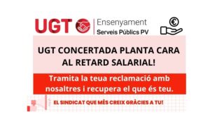 UGT CONCERTADA PLANTA CARA AL RETARD SALARIAL!Tramita la teua reclamació amb nosaltres i recupera el que és teu.