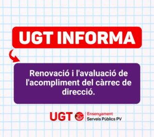 UGT INFORMA. Renovació i l’avaluació de l’acompliment del càrrec de direcció.