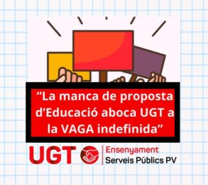La manca de proposta d’Educació aboca UGT a la vaga indefinida