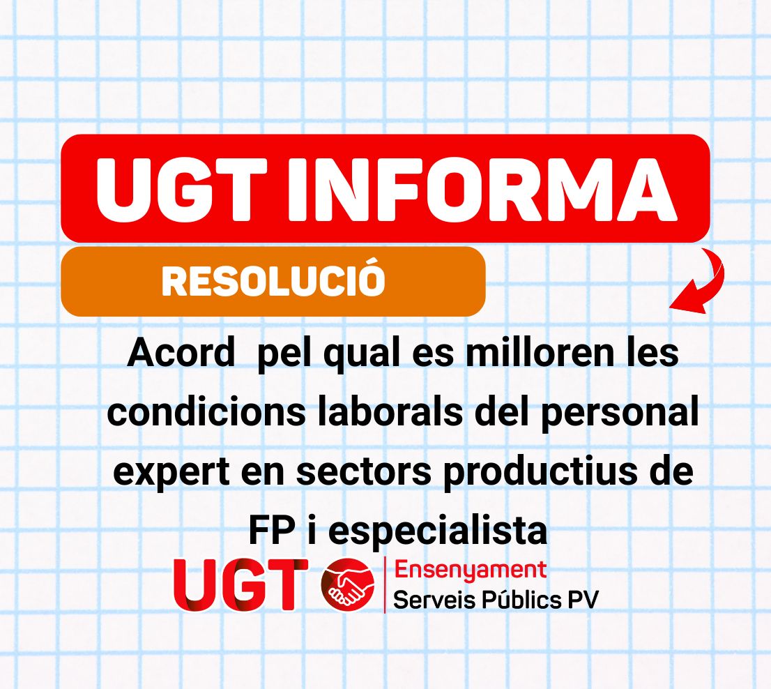 RESOLUCIÓ de 12 de desembre de 2025, de la Direcció General de Personal Docent, per la qual es publica l’acord subscrit per la Conselleria d’Educació, Cultura i Universitats i les organitzacions sindicals pel qual es milloren les condicions laborals del personal expert en sectors productius de formació professional i del professorat especialista d’ensenyances de règim especial.