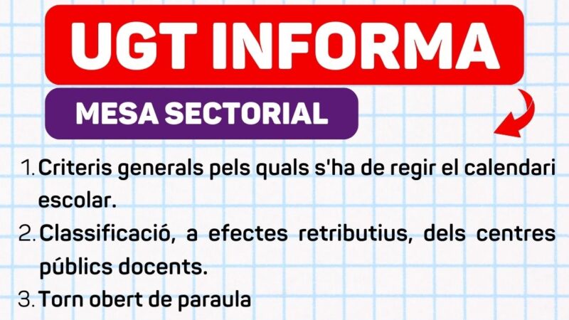 Proposta de modificació de l’Orde d’11 de juny de 1998, de la Conselleria de Cultura, Educació i Ciència, per la qual s’estableixen els criteris generals pels quals s’ha de regir el calendari escolar per a tots els centres docents de la Comunitat Valenciana que imparteixen ensenyances d’Educació Infantil, Educació Primària, Educació Secundària Obligatòria, Formació Professional, … Sigue leyendo MESA SECTORIAL. 26/02/26. Criteris per regir el calendari escolar, classificació centres a efectes retributius.