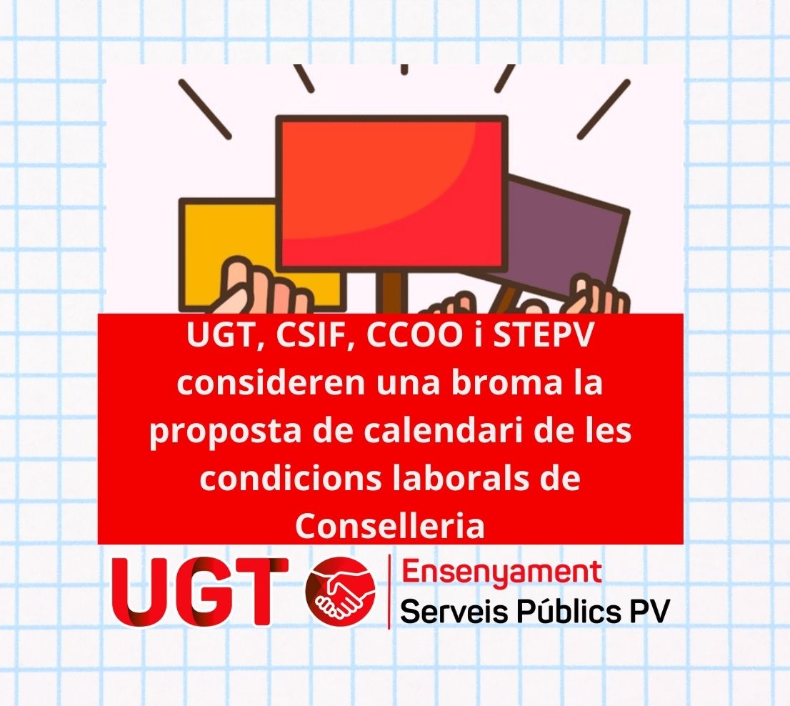 UGT, CSIF, CCOO i STEPV consideren una broma la proposta de calendari de les condicions laborals de Conselleria