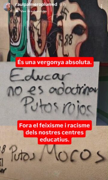 Des d’UGT Ensenyament PV denunciem amb fermesa que aquest tipus d’actes d’intimidació no són fets aïllats ni anecdòtics, sinó expressions clares de l’odi i de l’extremisme que busquen generar por, silenciar el pensament crític i qüestionar el paper transformador de l’escola pública. No podem normalitzar ni minimitzar aquestes agressions: les escoles i els instituts han de ser espais segurs, lliures de qualsevol forma de violència, amenaça o coacció, on es garantisca la llibertat d’expressió, el respecte mutu i la pluralitat.