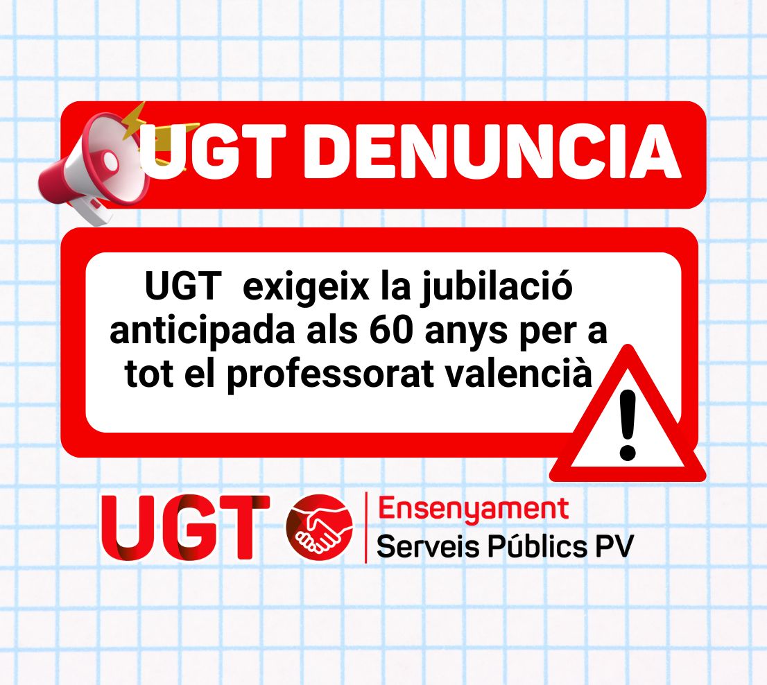 - Negociació immediata: UGT PV demana a la Conselleria d’Educació que pressione el Govern central per blindar aquest dret en l’Estatut Docent.