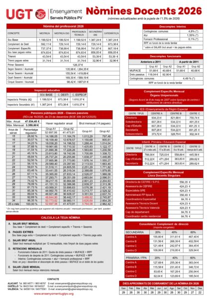 En els següents documents podeu revistar la nòmina docent de 2026.