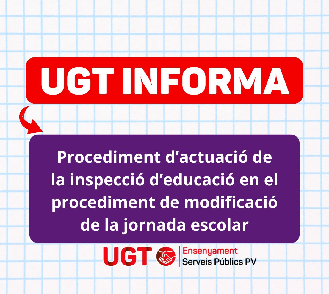 INSTRUCCIÓ 4/2026, DE LA INSPECCIÓ GENERAL D’EDUCACIÓ, PER LA QUAL S’ESTABLIX EL PROCEDIMENT D’ACTUACIÓ DE LA INSPECCIÓ D’EDUCACIÓ EN EL PROCEDIMENT DE MODIFICACIÓ DE LA JORNADA ESCOLAR EN CENTRES SOSTINGUTS AMB FONS PÚBLICS QUE IMPARTIXEN ELS ENSENYAMENTS D’EDUCACIÓ INFANTIL O EDUCACIÓ PRIMÀRIA